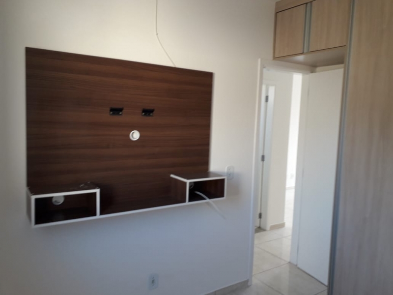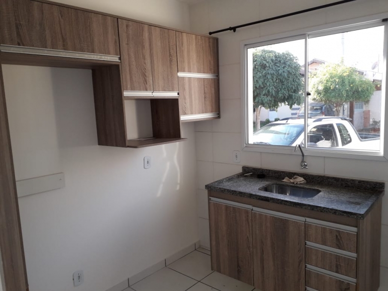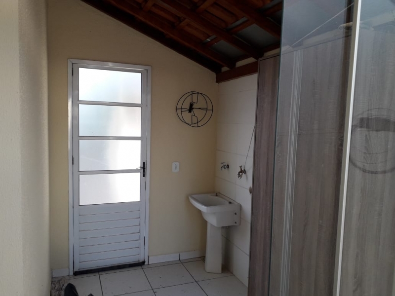 Casa no Condomínio Residencial Itamaracá com 2 vagas de garagem descobertas, sala de estar com painel, cozinha com armários, banheiro social e área de serviço.