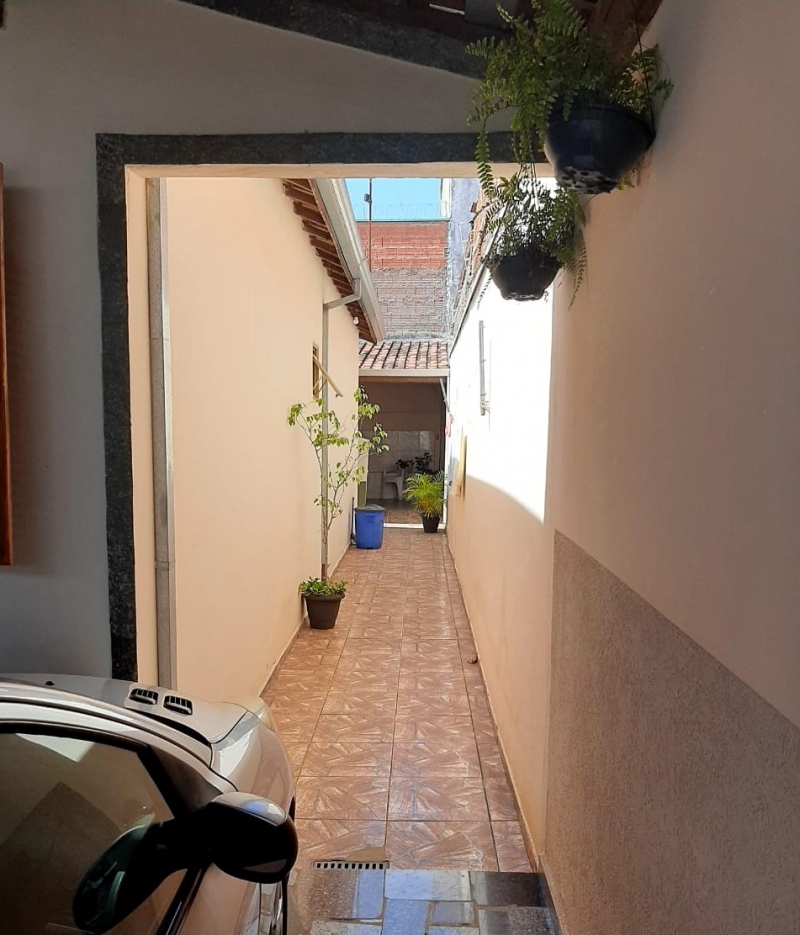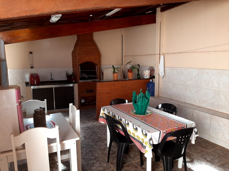 Casa no Jardim das Palmeiras com sala de estar, cozinha, banheiro social, 2 dormitórios, lavanderia, churrasqueira e 2 vagas de garagem coberta.