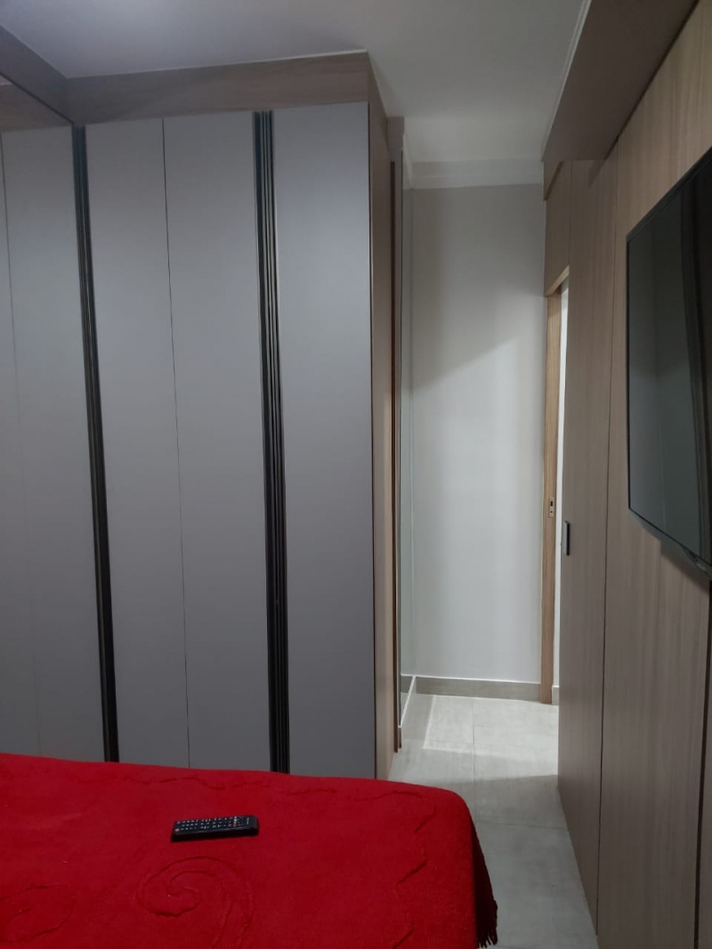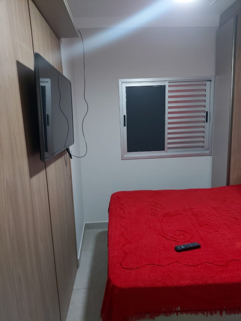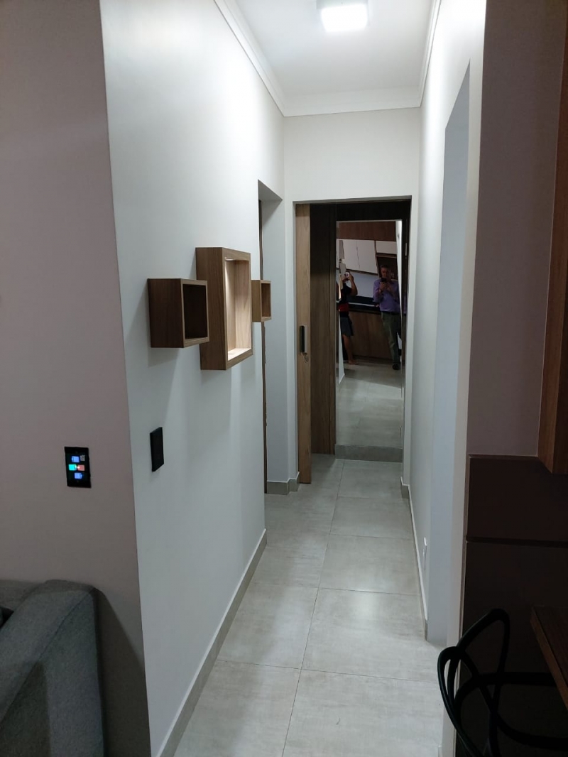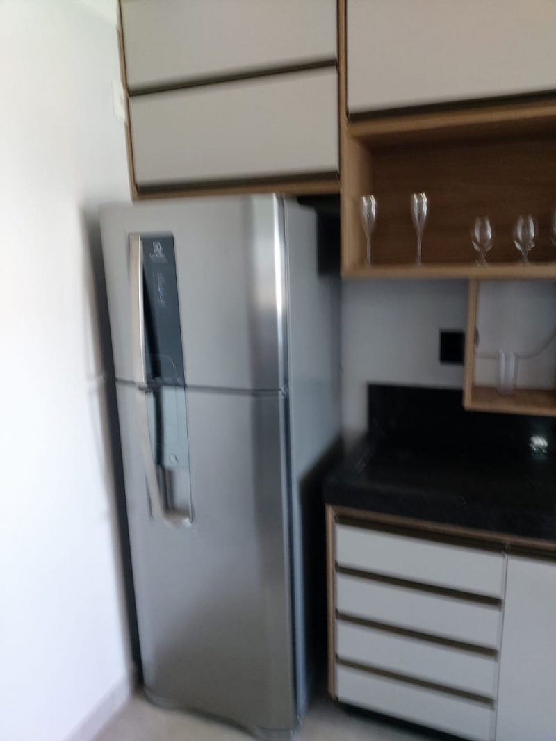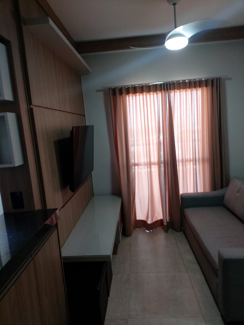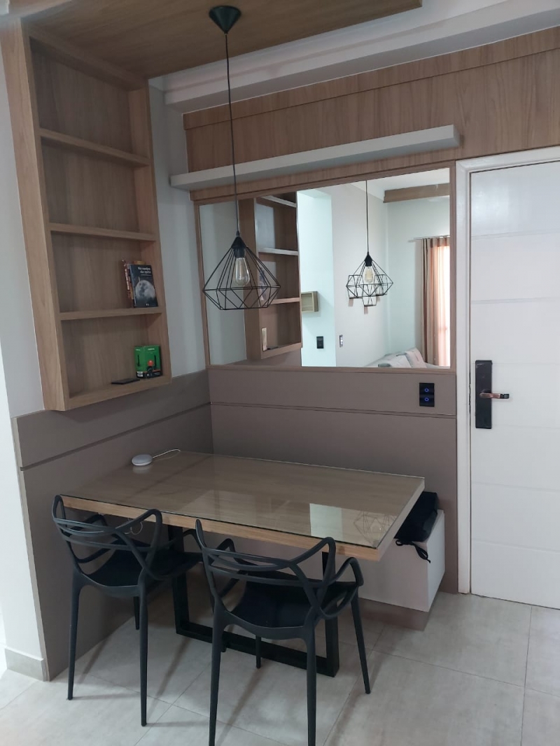 Sala com sofá e painel, cozinha integrada com armário, fogão cooktop, forno e geladeira, lavanderia com maquina de lavar roupas e armarios, 2 dormitorios com armarios, cama , colchao, tv. ventilador, interruptores com comando de voz para acender e apagar e porta com fechadura digital.